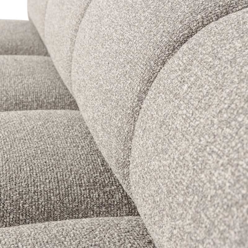 Liora is een verfijnde bouclé stof met een subtiele kleurmelange en een stevige grip. Deze elegante stof, vervaardigd uit 100% polyester, heeft een Martindale van 100.000, wat betekent dat de stof geschikt is voor intensief woongebruik. De stevige bouclé structuur zorgt ervoor dat de stoffering zijn vorm behoudt en lang meegaat, zelfs bij dagelijks gebruik.