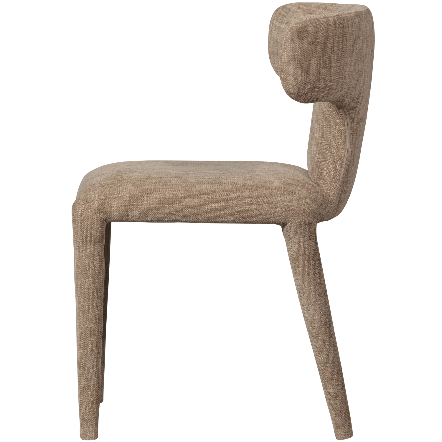 De stoel is opgebouwd uit een stalen frame met een multiplex zitting, in zijn volledigheid bedekt met een PU foam laag en van top tot teen bekleed met onze Tintle geweven stof. Onze Tintle geweven stof heeft een zachte grip en voelt comfortabel aan. De compact geweven stof is gemaakt van 100% polyester en heeft een Martindale van 100.000. De stof is opvallend door de lichte kleurmelange in de garens, wat zorgt voor een sprekende diepte in het meubelstuk.