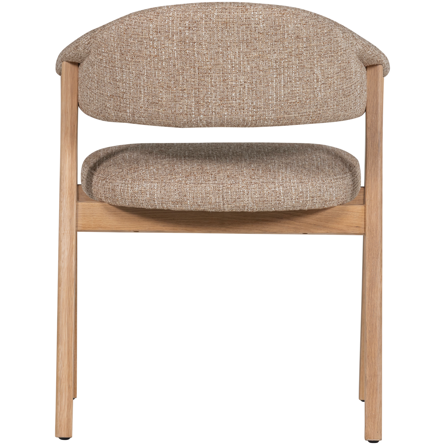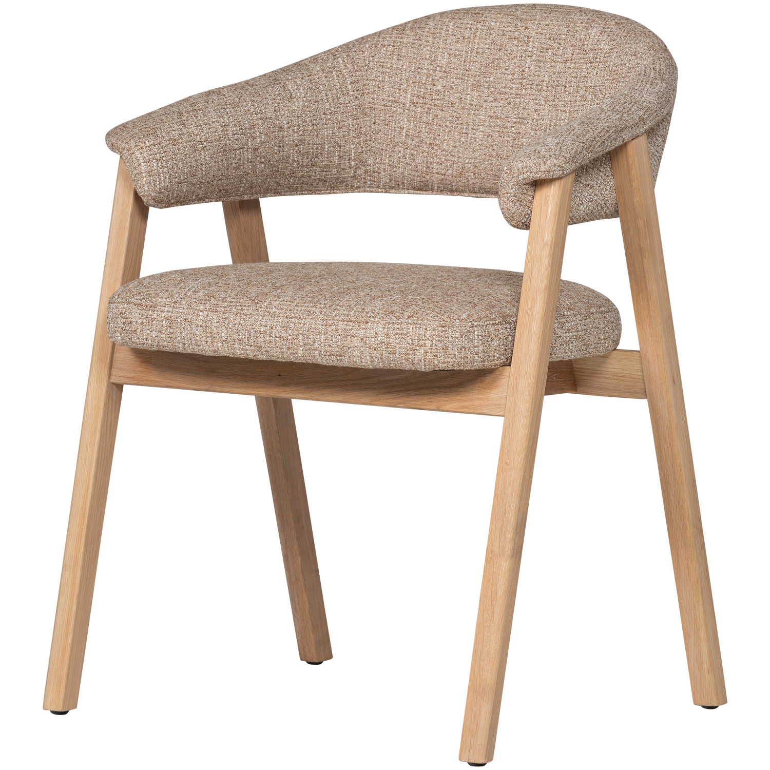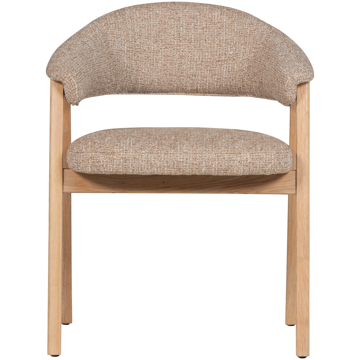De Tunar eetkamerstoel met armleuning van het Nederlandse interieurmerk WOOOD brengt een ontspannen sfeer naar je eetkamer. De combinatie van eikenhout met de zachte polyester stof zorgt voor een prettige plek aan tafel, waar je graag even blijft zitten na het eten. De armleuningen bieden extra comfort en maken deze stoel geschikt voor langere etentjes met vrienden en familie. Met zijn natuurlijke kleur en vrolijke uitstraling past deze stoel in verschillende interieurs. Dit is de plek waar je met een kop koffie nageniet van een gezellige avond.