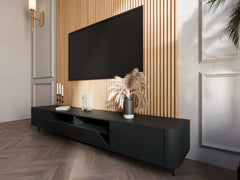 Ontdek onze stijlvolle Japandi tv-meubels, beschikbaar in drie elegante kleuren: wit, beige en antraciet. Verkrijgbaar in drie formaten en perfect voor elke woonkamer. Deze veelzijdige meubels kunnen zowel zwevend worden bevestigd als met de meegeleverde pootjes worden geplaatst.
