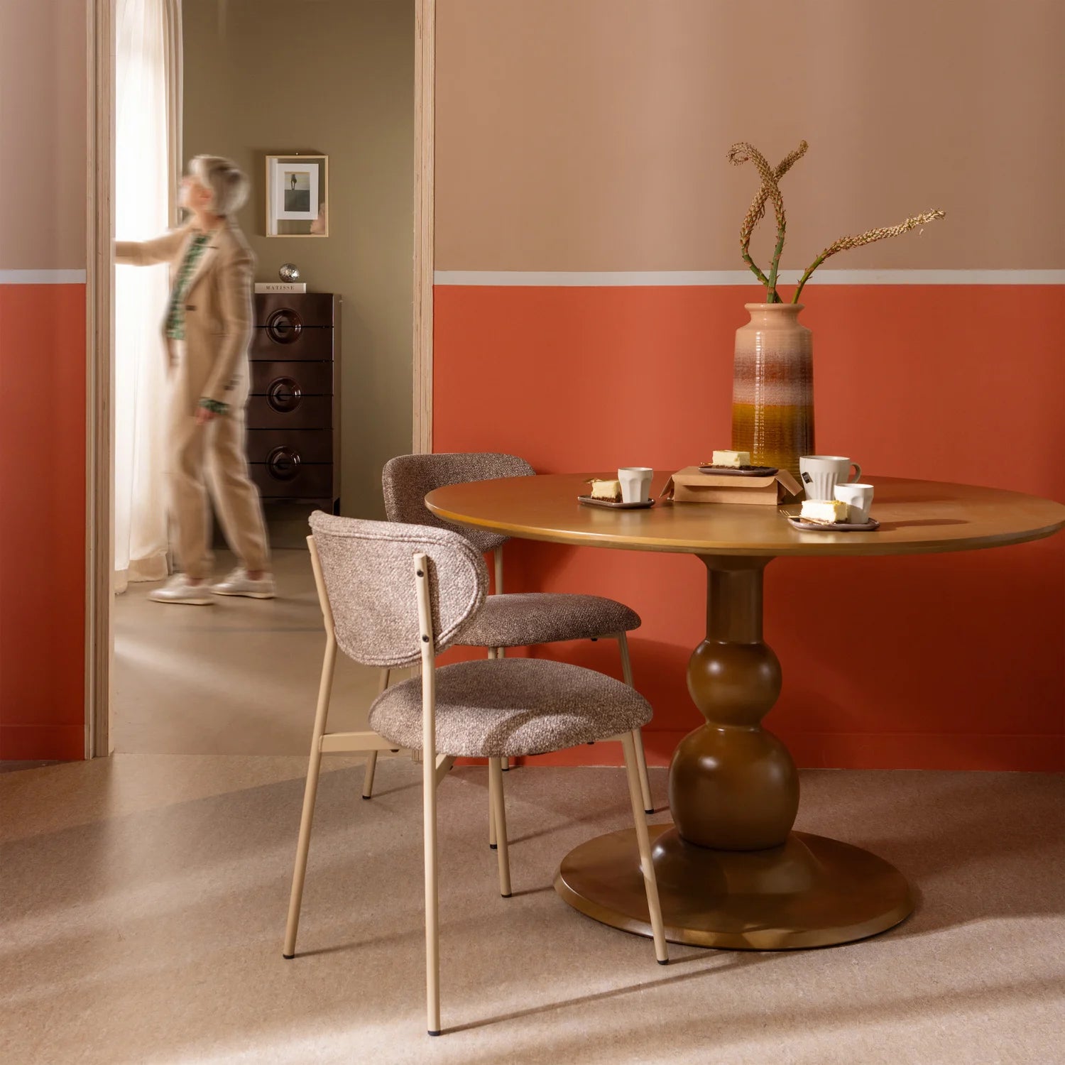 De Valor eetkamerstoel is afkomstig uit de collectie van het Nederlandse merk WOOOD en heeft een strakke uitstraling. De eetkamerstoel is bekleed met een geweven stof en beschikt over een slank metalen onderstel in bijpassende kleur. Dit moderne design zorgt voor urenlang natafelen en mag niet ontbreken in jouw interieur.