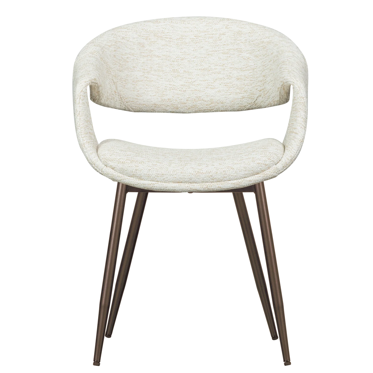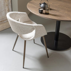 De Yossi eetkamerstoel is afkomstig uit de collectie van het Nederlandse merk WOOOD heeft een metalen onderstel en comfortabele zit. De stoel is in verschillende uitvoeringen verkrijgbaar, zodat je de perfecte match voor jouw interieur kunt vinden. De Yossi is bekleed met een geweven stof van 100% polyester. Een leuk detail van de stoel is de afwerking rondom de armleuning. Een stijlvolle en comfortabele eetkamerstoel om urenlang te tafelen.